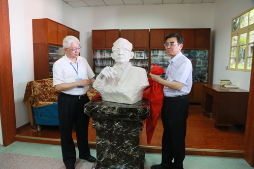 党委书记黎志强和复旦大学图书馆馆长陈思和为贾植芳先生雕像揭幕