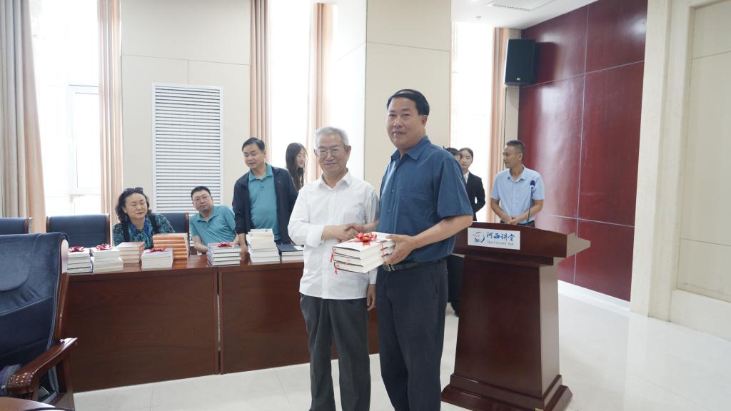 接下来是图书捐赠环节,西北师大、兰州城市公司、天水师范公司、陇东公司等单位和个人向公司图书馆赠送了他们的著作。