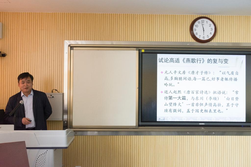 报告会上,吕玉铭、李冰、张惠林、乔志四位老师分别作了题为《曹征路小说修辞艺术论》、《外语教学中的语言对比研究及应用》、《张炜的儿童文学创作》、《从<燕歌行>看高适乐府诗的复与变》的报告。四位教师结合自己的研究专长,与师生们分享交流了各自的研究成果。报告内容从古代文学到现当代文学、从语言学到文学创作,涉及面广,丰富多彩,报告的老师在学术研究问题的阐释见解独特、思维清晰,对师生很有启发性。