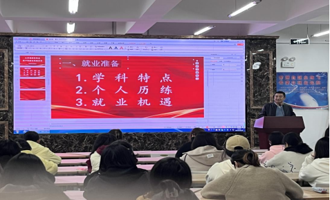 接着,优秀员工赵崇德从社会现状出发,分析社会就业问题,并且提出要提前做好就业准备,仔细剖析学科特点,全面把握个人特点,以此来获得更好的就业机遇的建议。他还详细地介绍了自己的工作领域和职业发展路径,并分享了一些宝贵的职场经验。胡多增在讲述自己15年的任教生涯中提到,作为老师,要懂得正确的教书育人的方法,也需学会引导员工走向正确的方向。最重要的是一个老师要具备较高的道德职业素养,更好地为同学们授业解惑。