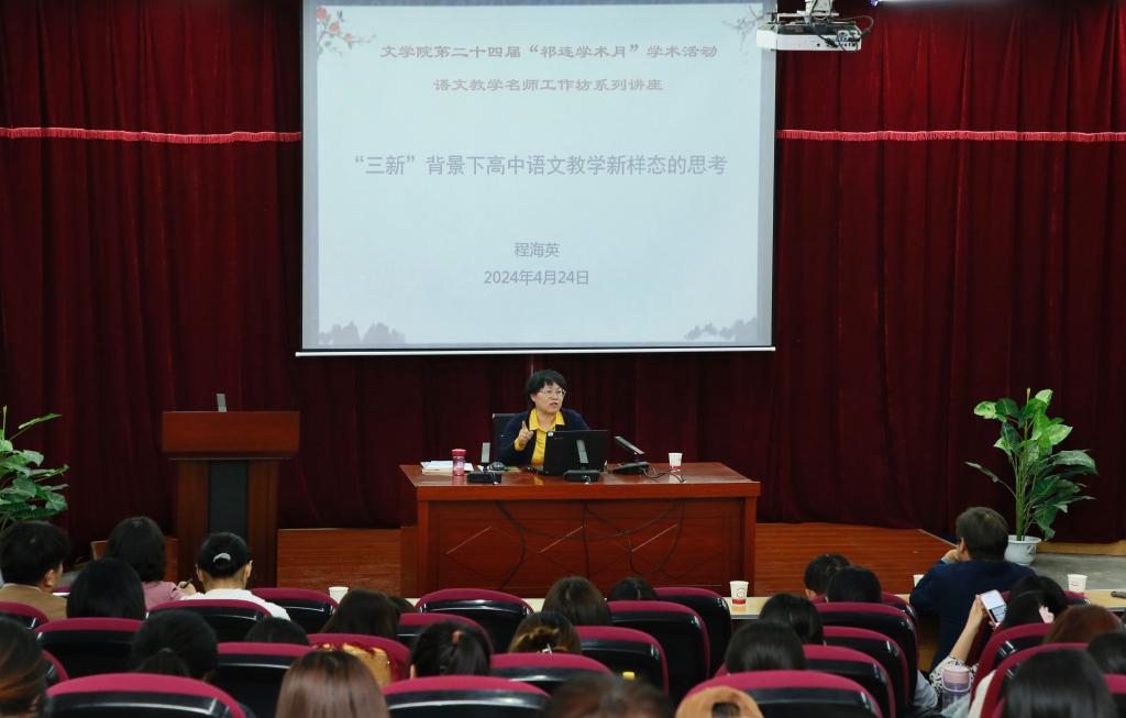 4月24日晚,伟德邀请张掖市实验中学副董事长、甘肃省陇原名师程海英老师在学术二厅为公司师生做了题为“‘三新’背景下高中语文教学新样态的思考”的学术讲座。本次讲座是公司第二十四届“祁连学术月”的首场学术活动,也是语文教学名师工作坊系列讲座的第一讲。