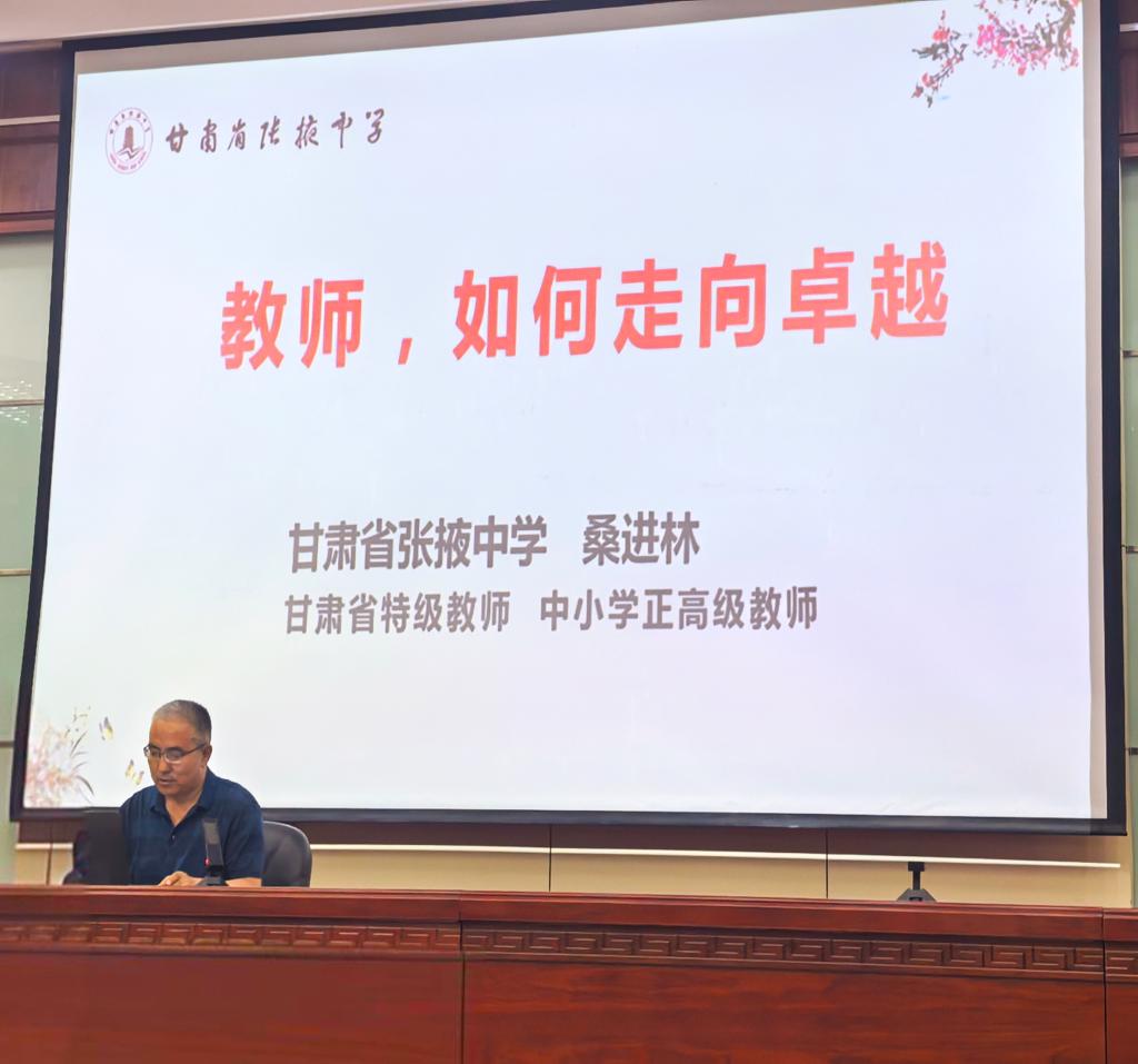 6月4日晚,伟德第二十四届“祁连学术月”之语文教学名师工作坊系列讲座第二讲在图书馆二楼报告厅举行,公司邀请甘肃省特级教师、张掖中学正高级语文教师桑进林老师为师生作了题为“教师,如何走向卓越”的讲座。