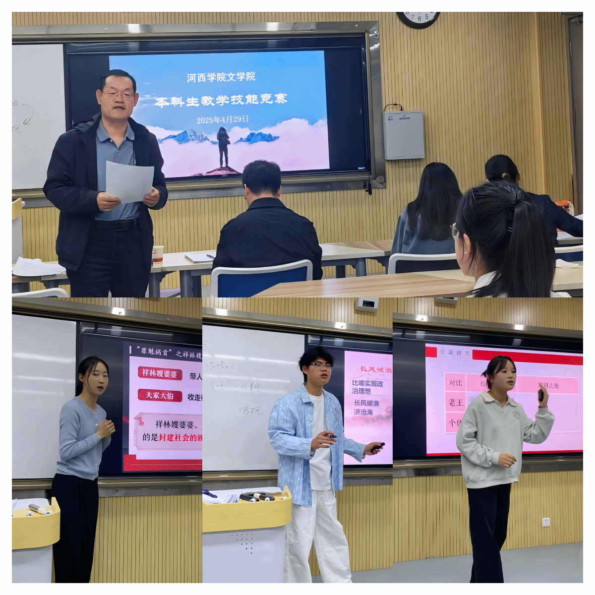 本次比赛共有23名同学参赛,经过初赛角逐,有9名同学晋级复赛,复赛共选拔出3名同学参加公司的决赛。在比赛中,选手们从教学设计、即兴演讲、教学展示、教学反思四个方面展示了较为全面、扎实的教学基本功。公司党万生、刘梅兰、张文彩三位老师及学科语文方向的张佳瑜、刘娥、贾尚涵三位研究生担任比赛评委。