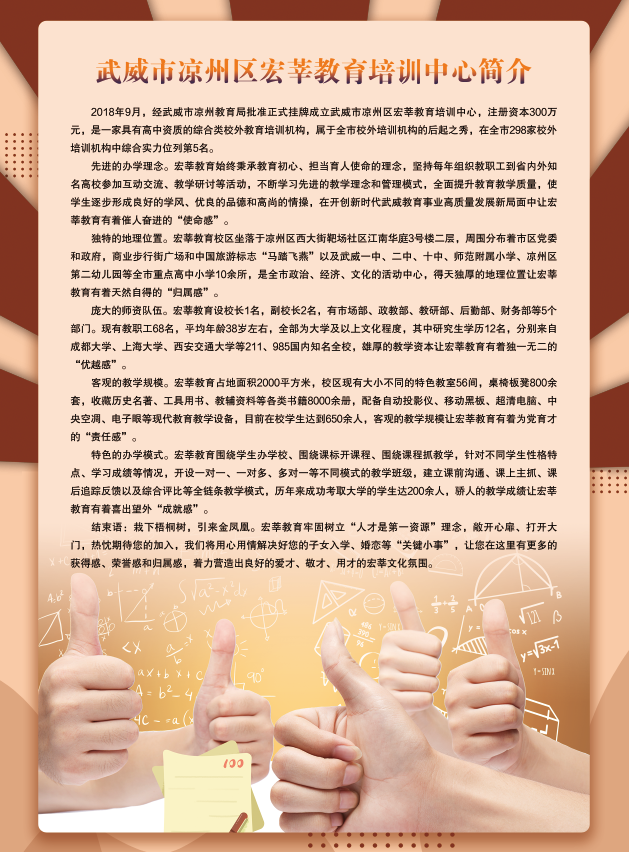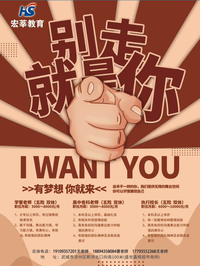 【招聘公告】武威市凉州区宏莘教育培训中心