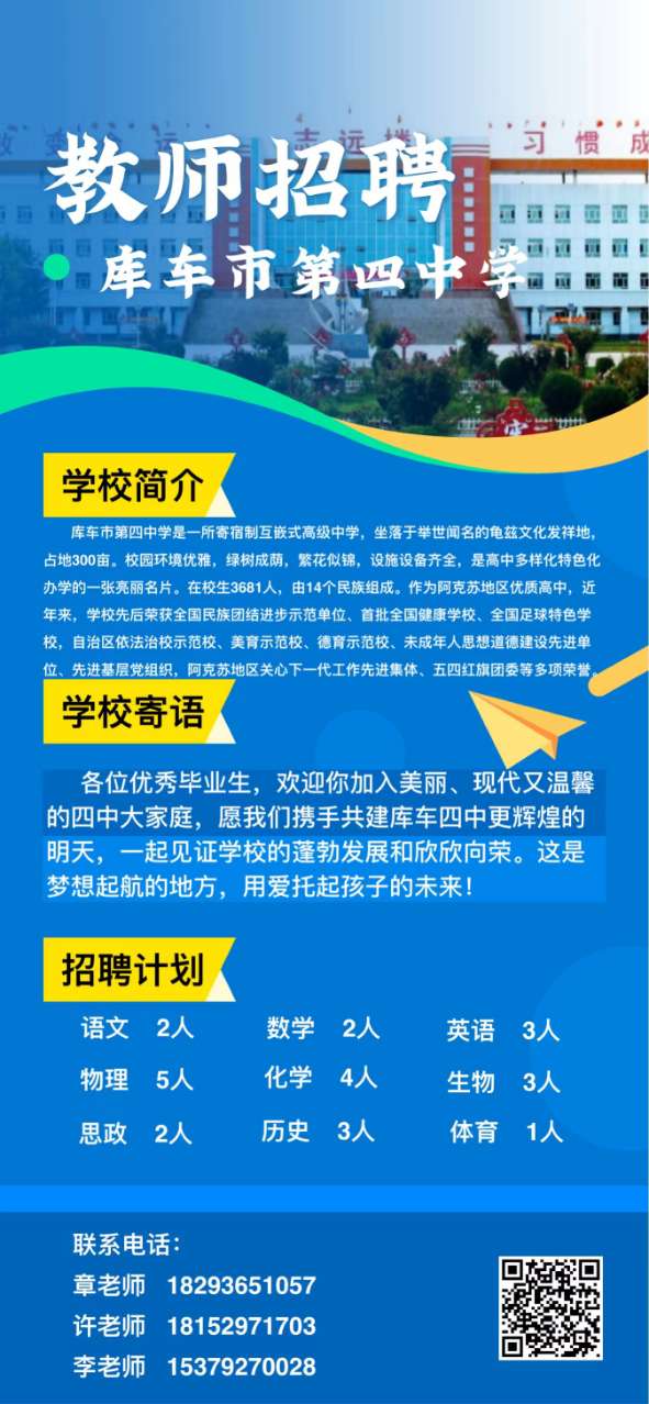 【招聘公告】库车市第四中学