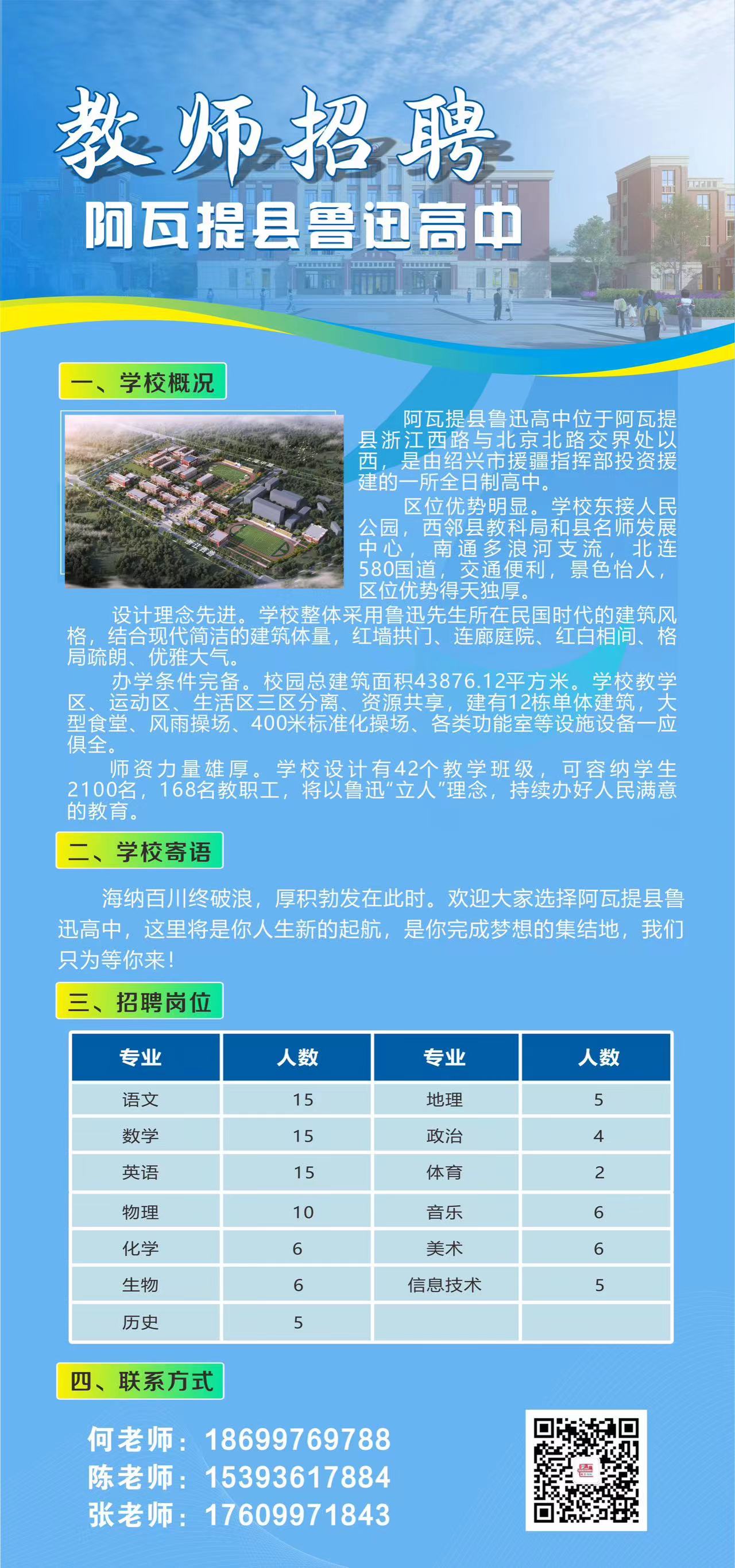 【招聘公告】阿瓦提县鲁迅高中