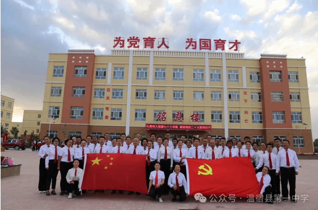 温宿县第一中学始建于1959年,2019年搬至新校区,位于温宿县稻香路245号。校区占地157亩,建筑面积33217平方米,绿化面积44000平方米。教职工240人,其中专任教师201人,研究生4人,本科197人。有自治区教学能手2人,自治区天山英才1人,地区学科带头人1人,地区教学新秀4人,骨干教师5人,县级骨干人才2人。现有62个教学班,员工3080人。