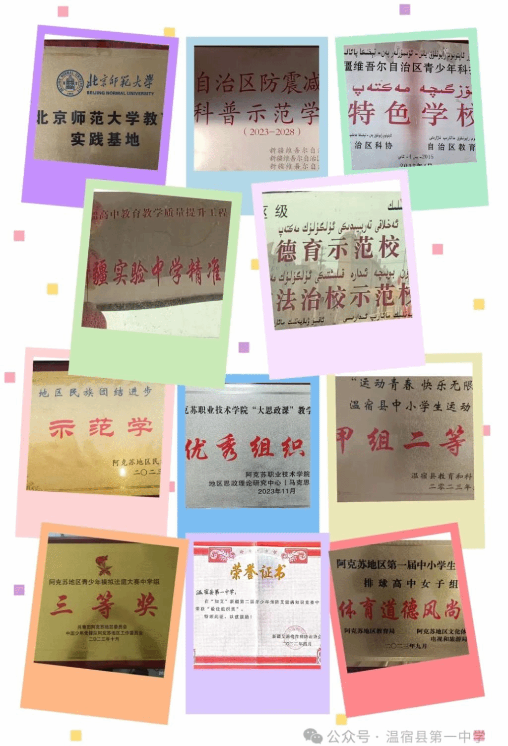 近年来公司先后获得教育部南疆教学质量提升项目公司、国家级足球特色公司、国家防震减灾科普示范校、自治区防震减灾科普示范校、自治区青少年科技创新特色公司、自治区“国培计划(2021)”---中小学教师信息技术应用能力研修项目样板校、阿克苏地区优质高中、阿克苏地区民族团结进步示范校、北京师范大学新闻传播公司教育实践基地等荣誉称号。
