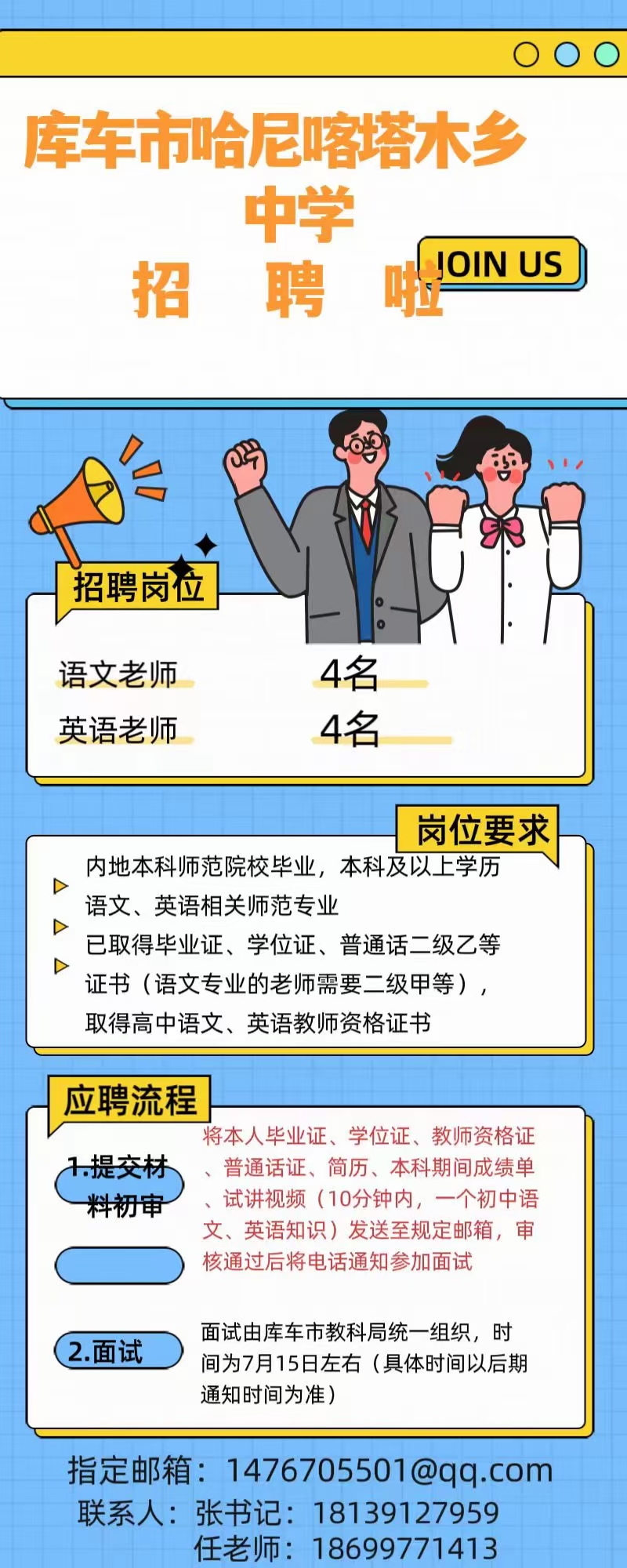 【招聘公告】库车市哈尼喀塔木乡中学招聘